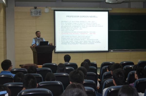 2013年10月17日下午13:30,在交通学院楼A103报告厅,S.C. Wirasinghe教授给我院师生带来一场“公共交通系统数学建模——关于NEWELL方法的见解和延伸”的精彩讲座。