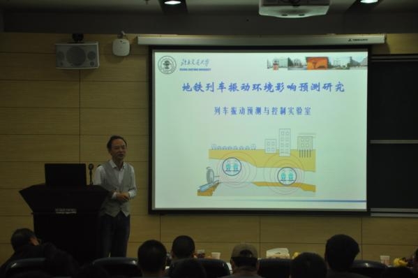 北京交通大学刘维宁教授生动风趣地介绍了“地铁列车振动环境影响预测研究”。刘教授讲解了带领团队研究的方向,谈到了承担国家、省部级及企业的重大课题,分享了研究团队和实验室建设的具体内容,分析了主要研究成果供大家学习、交流。