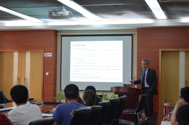 Agostino Nuzzolo教授在讲座中向老师们、同学们提出了一种步骤,用于确定道路重型货运车辆OD矩阵基础上铁路-公路联运码头的潜在市场。这些矩阵是使用基于自动车辆监控的新方法-AVM数据获得的。应用于威尼托地区的铁路-公路联运码头,这是意大利最具活力的地区之一,也是One Road-One Belt走廊的一个节点。